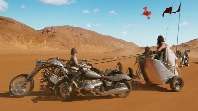 In 2019 I released my post-apocalyptic novel, A Happy Bureaucracy, shortly followed by its sequels Fear and Loathing in the Wasteland, and Post-Apocalyptic Pirates. What was to be a throw-away joke about toilet paper becoming the most expensive and rare luxury item in the apocalypse became a reality just a year later with the COVID-19 shutdowns. What was supposed to be the most over-the-top “Mad Max-inspired vehicle” I could think of as a gag, The Colonel’s motorcycle chariot, became the least interesting vehicle in Furiosa just five years later.